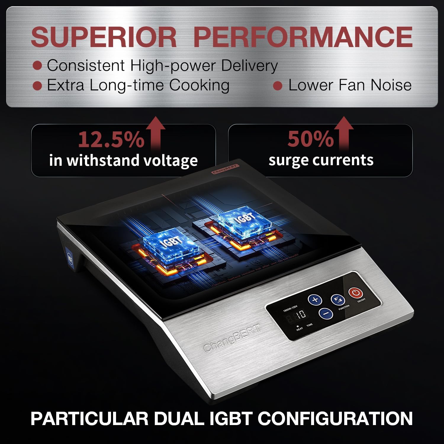 Crafted from high-quality 18/10 stainless steel, the ChangBERT Induction Cooktop is built to last and withstand the rigors of daily use. The sleek and modern design adds a touch of elegance to any kitchen, making it a standout piece in your culinary arsenal.