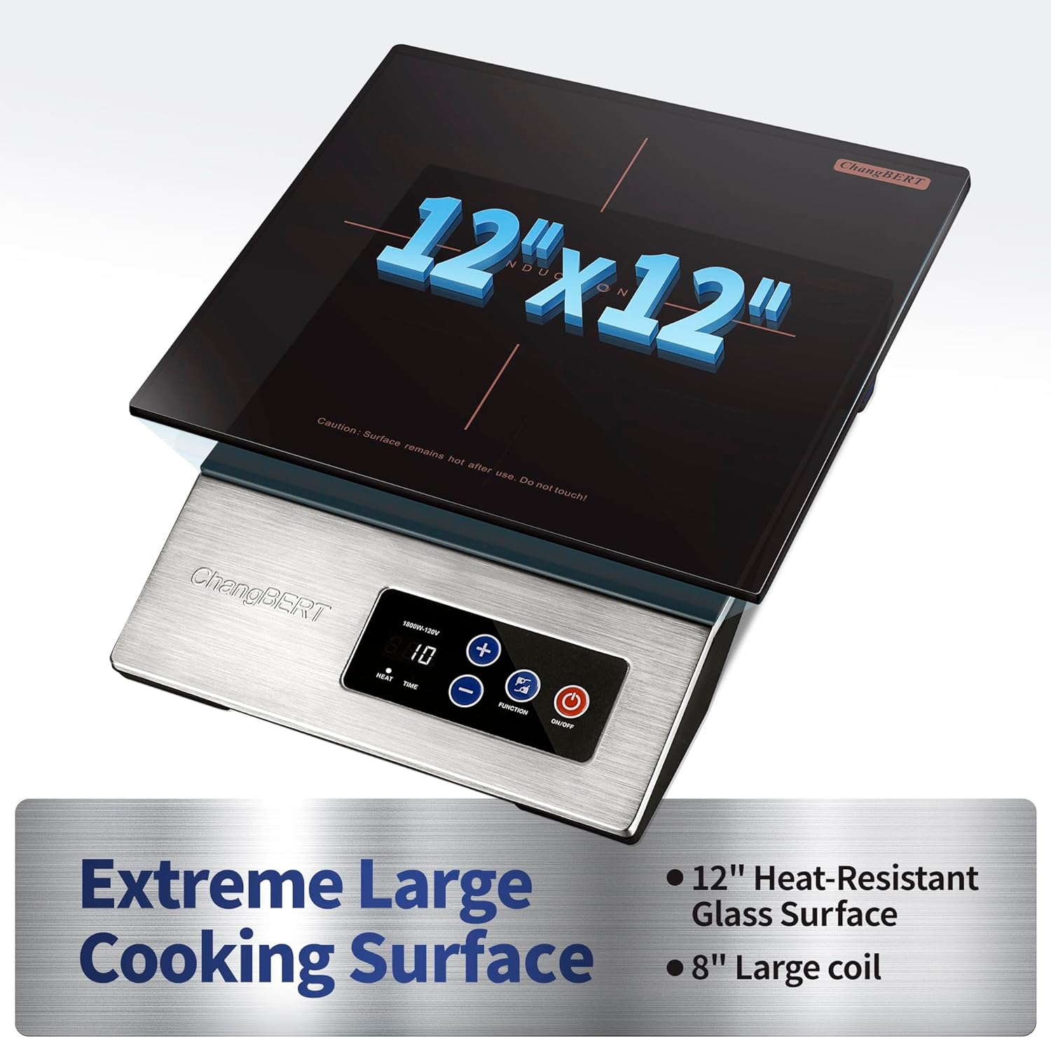 ChangBERT 1800W Commercial Grade Induction Cooktop, NSF Certified Portable Large 8” Heating Coil, 12″ Heat Resistant Cooking Surface 18/10 Stainless Steel Power Pro Chef Professional Burner Hot Plate
